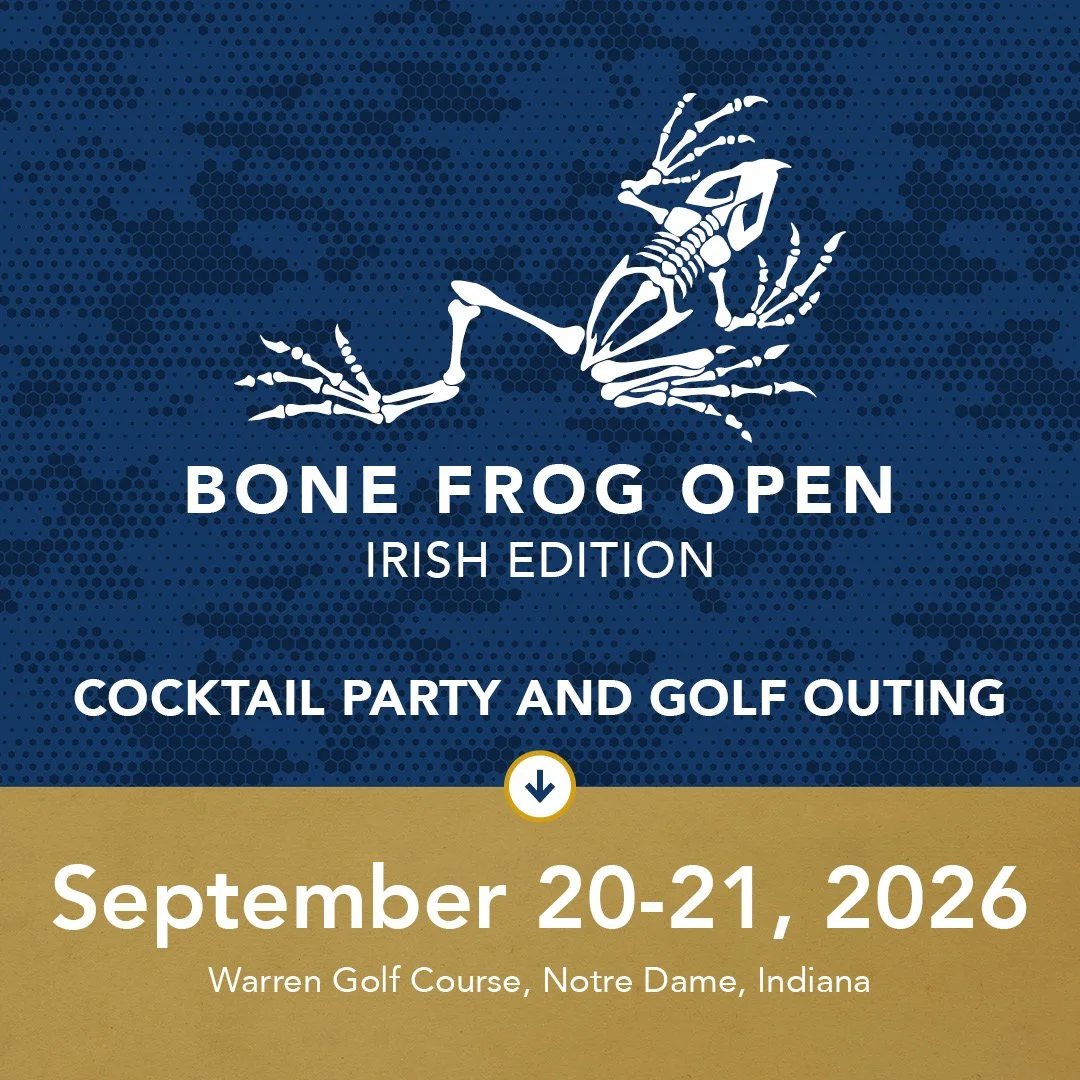 The Bone Frog Open - Irish Edition returns to the iconic University of Notre Dame for a weekend of honor, inspiration, and camaraderie in support of our nation’s heroes. On Sunday evening we’ll enjoy a high-energy cocktail party and auction. On Monday golfers will experience a full outing at Warren Golf Course. Part of the proceeds stay local to the Northern Indiana area in support of veterans and first responders.